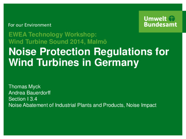 Noise Protection Regulations for Wind Turbines in Germany. (2014). EWEA Technology Workshop: Wind Turbine Sound. https://openumwelt.de/handle/123456789/8410