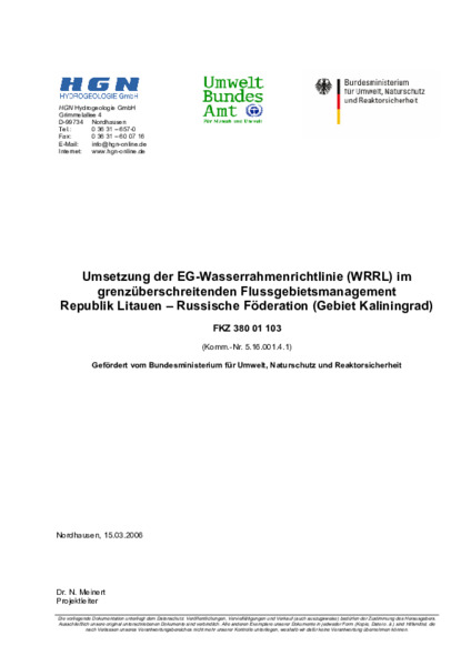 Umsetzung der EG-Wasserrahmenrichtlinie (WRRL) im grenzüberschreitenden Flussgebietsmanagement Republik Litauen – Russische Föderation (Gebiet Kaliningrad). (2016). https://doi.org/10.60810/openumwelt-5194